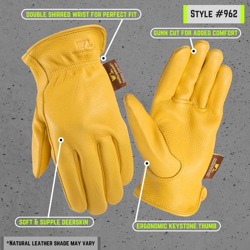 Wells Lamont Men's Deerskin Full Leather Light-Duty Driving Gloves | Medium (962M) Gold