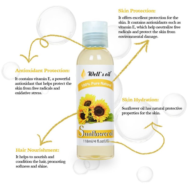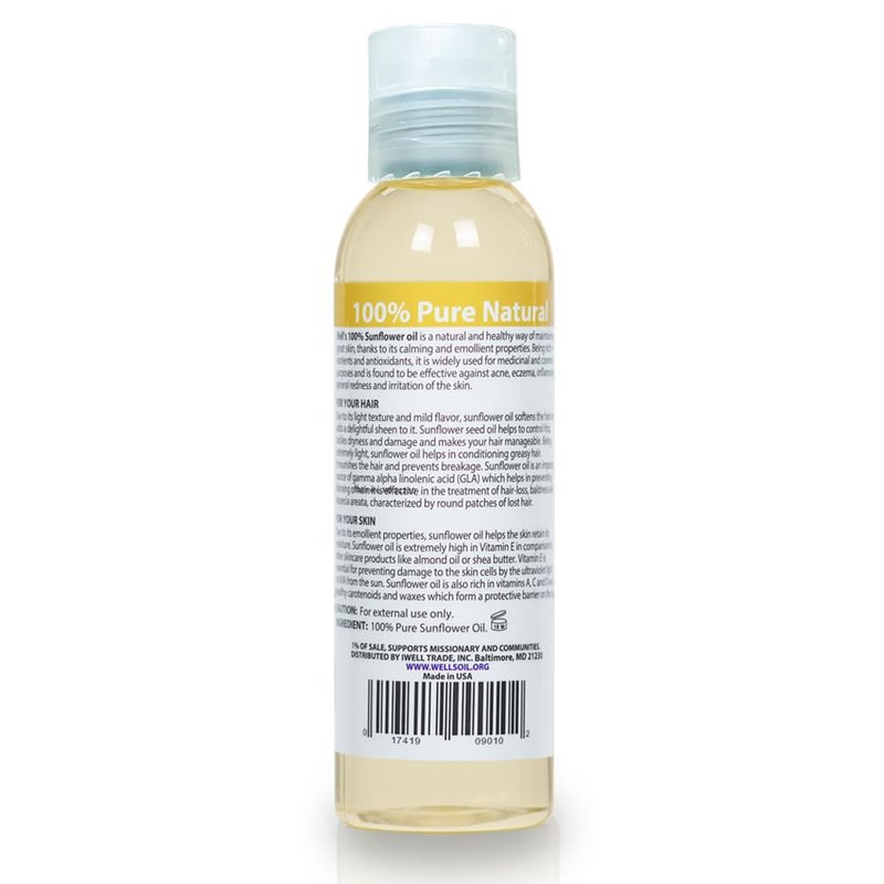 Well's Oil SUNFLOWER OIL | 4oz(118ml) | All-Natural | For Hair + Skin | Refined, Cold Pressed | Lightweight | absorbs easily
