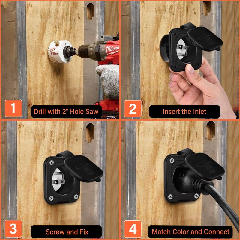 - 【Easy Reliable Installation】: 2" Hole size required, clear see-thru wiring block (Black-Hot, Green-Ground, Silver-Neutral), and 4 long Stainless Steel screws will fix straight blade flanged inlet on the hole or wall more tightly. No gap on the edge!