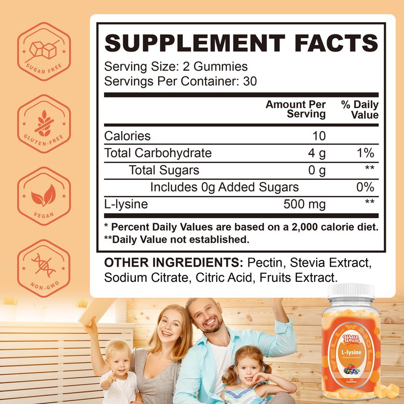 - High-quality Ingredients: Well&Whole L-Lysine Gummies are GMP certified, non-GMO, soy-free, gluten-free, and vegan-friendly. Choose L-Lysine supplement and enjoy the dual benefits of nature for all-around health care.
