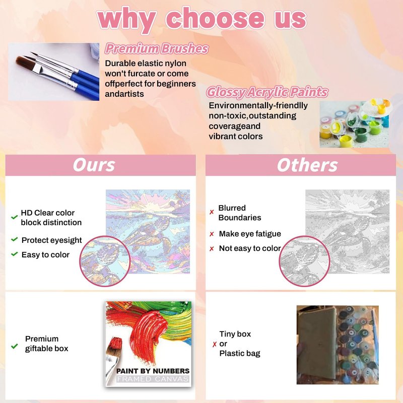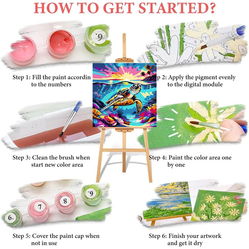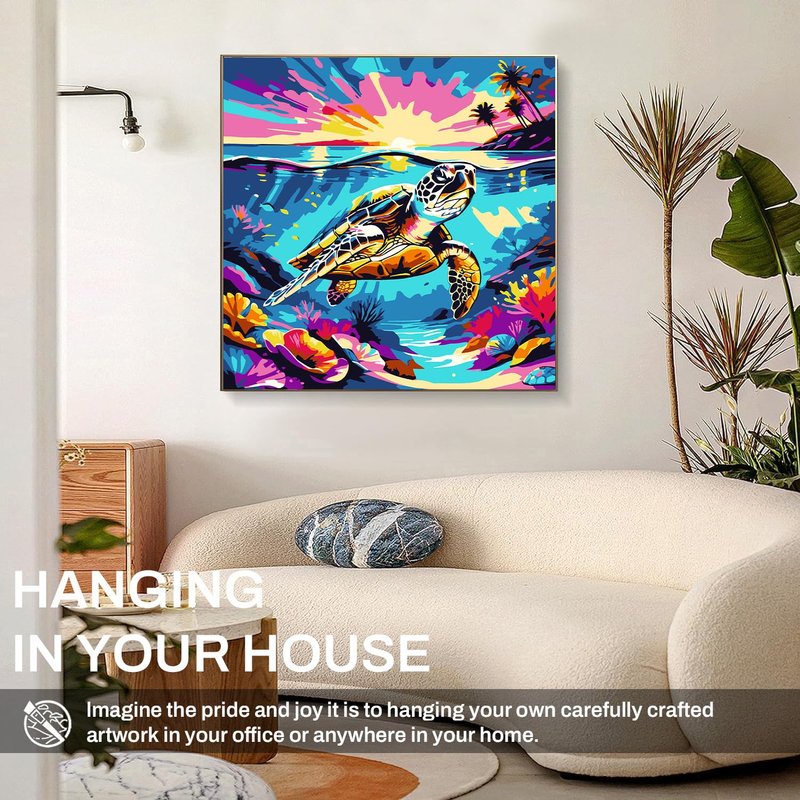 - 【Enjoy Your Free Time】Sea turtles paint by numbers kit for adults beginner framed is suitable,paint by numbers cultivates hands-on ability and patience,and stays away from electronic products.It’s funny and easy, hobbies for women,adults crafts and beginners.Just enjoy creating a stunning work of art, everyone could be a good artist.