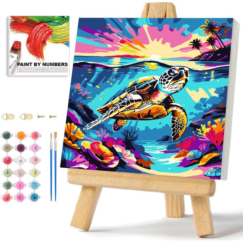 WEMEON Sea Turtle Paint by Numbers Kit for Kids with Framed- Easy Paint by Numbers Kit for Kids Age 4-12, Simple Painting Paint by Numbers for Gift Home Wall Decor(10x10Inch)