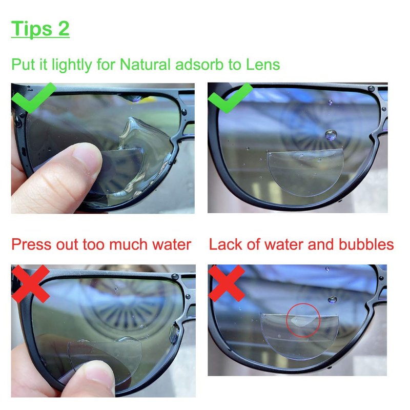 - While ready for immediate use, it's a good idea to let sit for up to 2 hours before using. If bubbles do form after a few hours or day, you'll need to repeat the process again; stick-on lenses convert any eyewear into magnifying reader bifocal glasses | Just press on and stick | Superior, no bubble, distortion-free, optical grade clarity