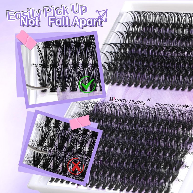 - Natural Look and Feel: Experience the natural beauty of Wendy Lashes cluster lashes, meticulously crafted to mimic the texture and curl of real lashes. Lightweight and comfortable to wear, our eyelash extension seamlessly blend with your natural lashes, delivering a flawless finish that enhances your natural beauty.
