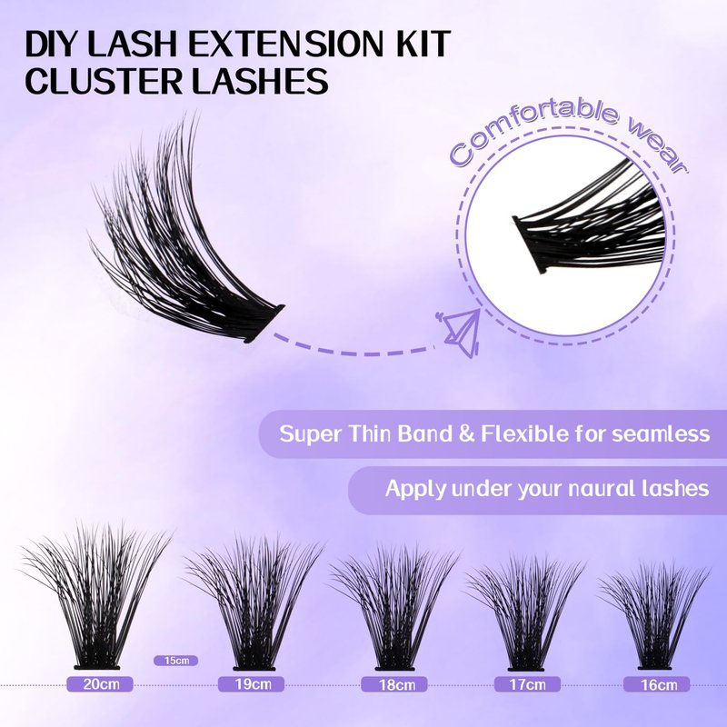 DIY Individual Clusters: Wendy lashes cluster extensions are natural and near real lashes, cluster lashes are 3D effect curl and a super thin sharp tips, similar in thickness to real eyelashes.2 Style Reusable Clusters: Wendy lash clusters have 2 different kind of clusters in one tray. Comfortable Cluster Lashes: Wendy volume lash clusters are soft and not sting eyes, lightweight and no burden when you wear lashes. And eyelashes are unique design, can enlarge and highlight your eye makeup.Superior Material and Firm Root Lashes: Wendy cluster lashes are used by velvet silk material, made with upgrade hot melt technology to ensure individual cluster lashes stable and not fall apart.DIY Individual Lashes at Home: Wendy volume lash clusters are reusable, easy to use, very friendly to beginners. You can bring a perfect salon care for your lashes at home.Customer Service: If you have any questions or problems about our cluster lashes, please contact with us and we will try our best to help you solve the problem.