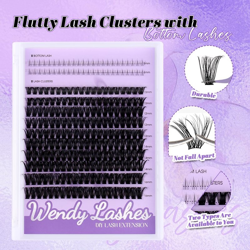 - Natural Beauty Made Effortless: Experience the natural look and feel of Wendy Lashes cluster lashes, expertly designed to mimic the texture and curvature of real lashes. Lightweight and comfortable, our lashes seamlessly blend with your natural lashes for a flawless finish that enhances your beauty effortlessly. Perfect for beginners, our DIY eyelash extension kit ensures professional-quality results at home with minimal effort required.