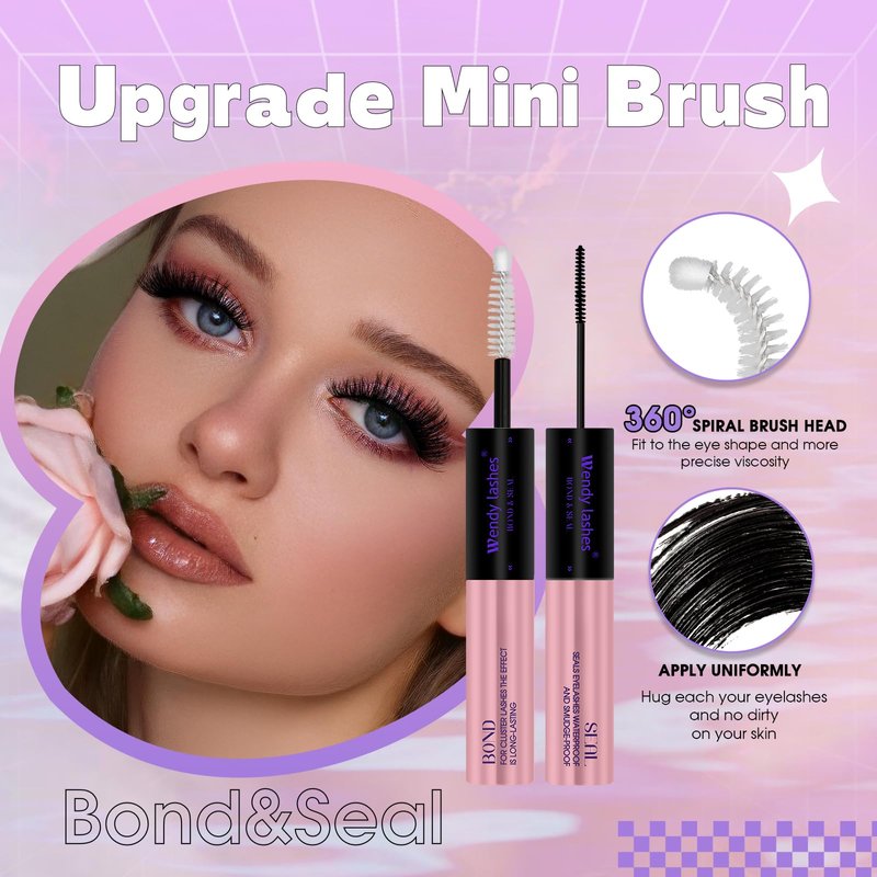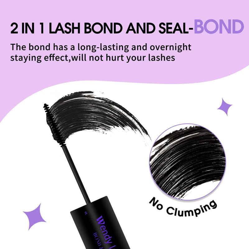 - Lash Bond and Seal 2 In 1: Wendy Lashes presents a unique lash bond & seal with a dual-ended design. One end features a spiral black mascara brush for effortless application and even distribution, while the clear seal on the other end locks in your lash style, ensuring individual and cluster lashes stay put.