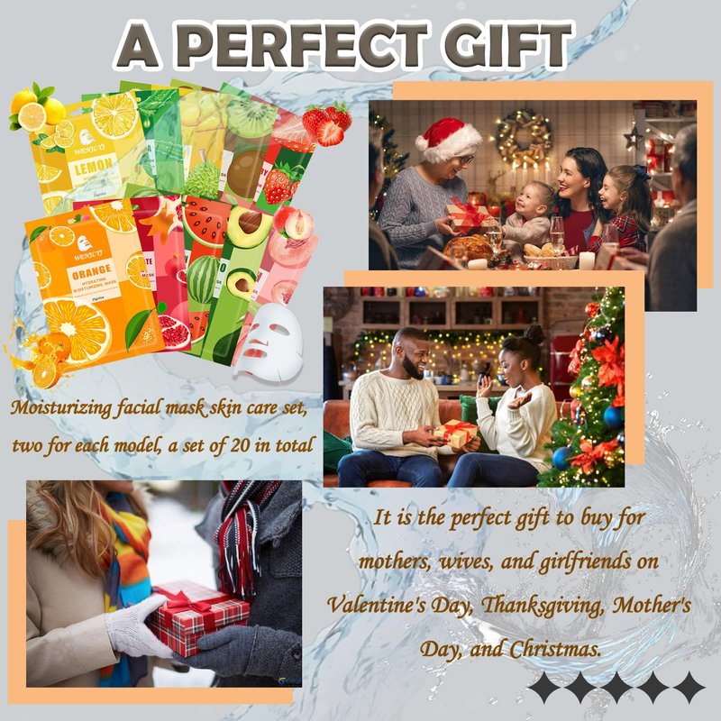 WENJLYJ 20 Combo Face Sheet Masks Skincare Set,Moisturizing Face Mask Skin Care Kit,Hydrating Facial Mask Gift Set for Women,Mom,Men,Wife & Girlfriends