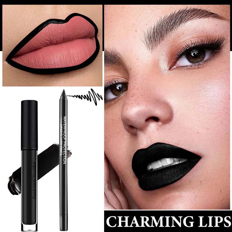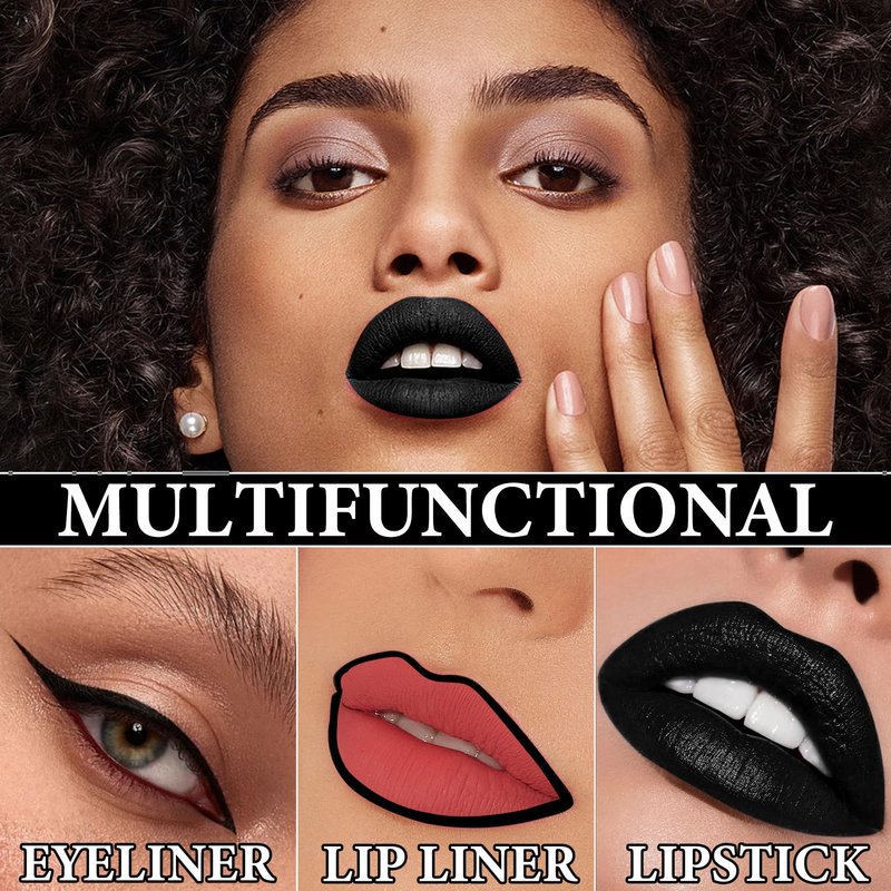 - 🍄【Black Matte Lipstick Set】Matte lipstick includes a black lip gloss and a black lip liner in a bold matte black color that allows you to shine and glamorize in all crowds and occasions, creating a fresh and glamorous look.