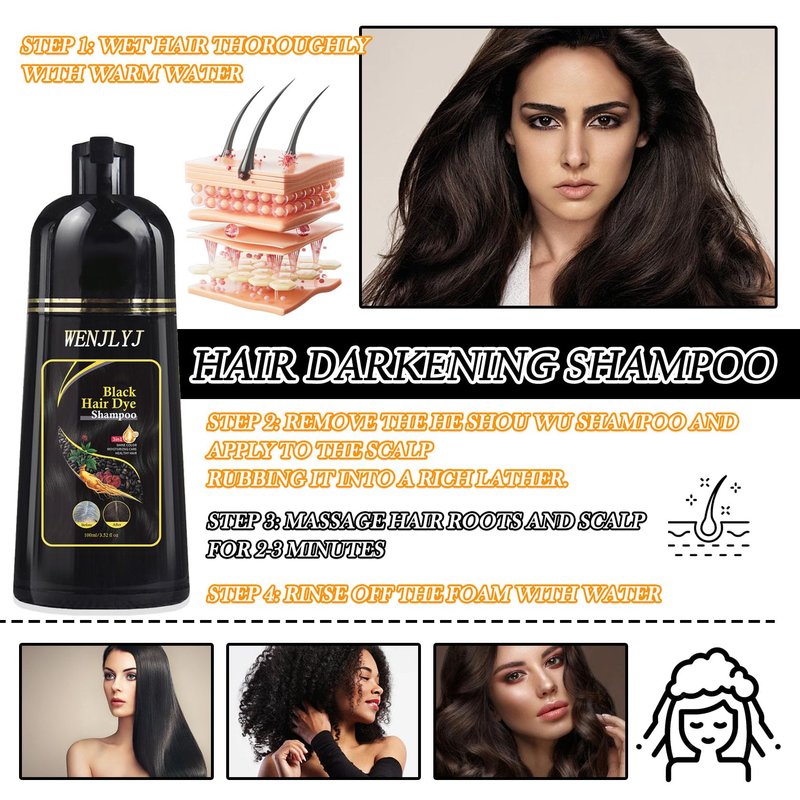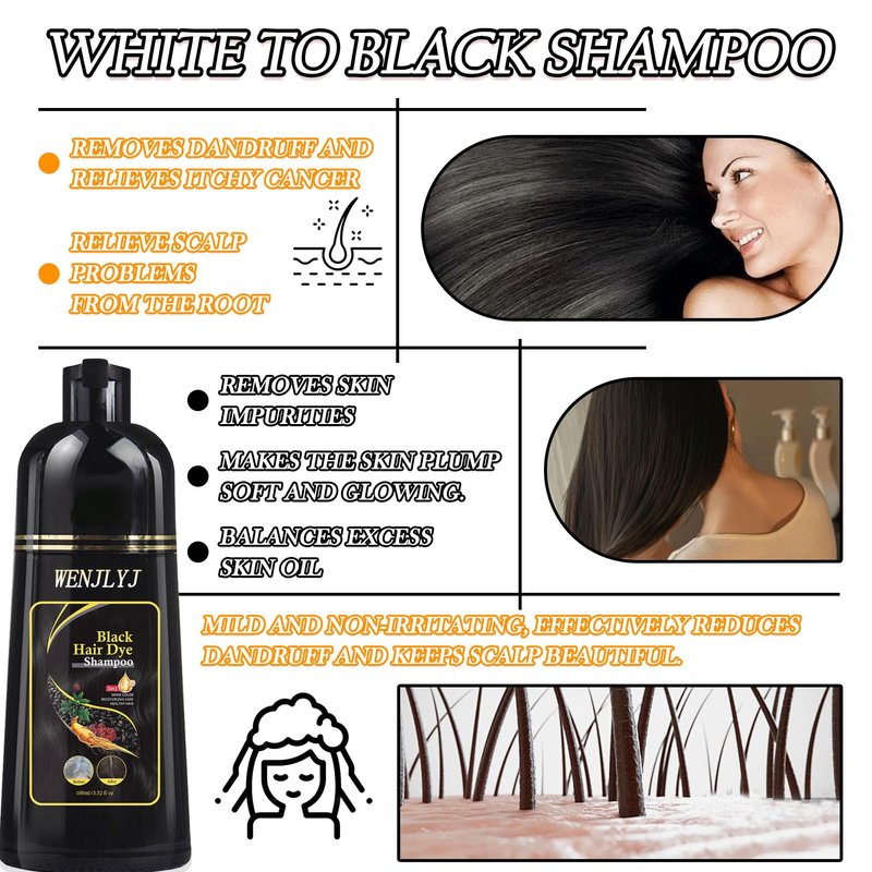 WENJLYJ Black Hair Dye Shampoo,Hair Color Shampoo for Women & Men,Long Lasting Hair Shampoo