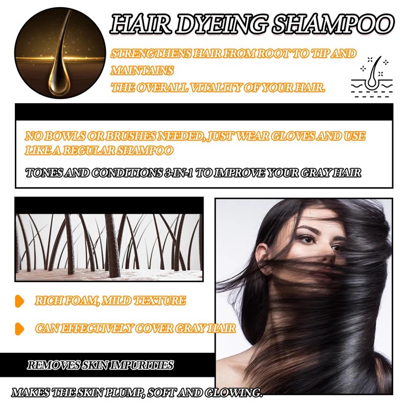 - š„ćHow to usećFirst rinse your hair with lukewarm water to moisten, then apply dye shampoo on the scalp to create a large amount of foam, massage for 2 - 3 minutes, and finally rinse off the foam with water.