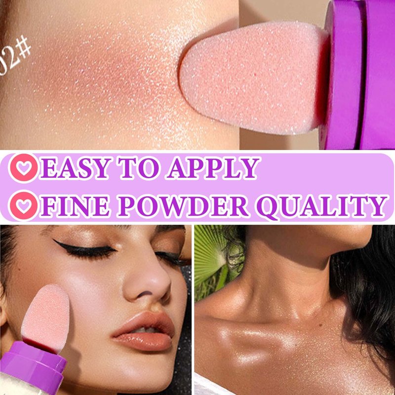 - 🙌【Soft Powder Puff Head】You open the lid of the highlighter powder stick to reveal a soft, easy-to-use puff head that you tap gently and the shimmering highlighter will adhere to your skin.