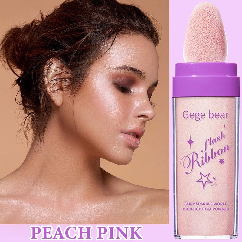 WENJLYJ Polvo De Hadas Highlight Patting Powder,Smooth Sparkle Patting Powder High Gloss Highlighter Powder Stick Brightens the Natural Three-dimensional Face Body Hair Glitter Makeup Stick(Peach Pink)