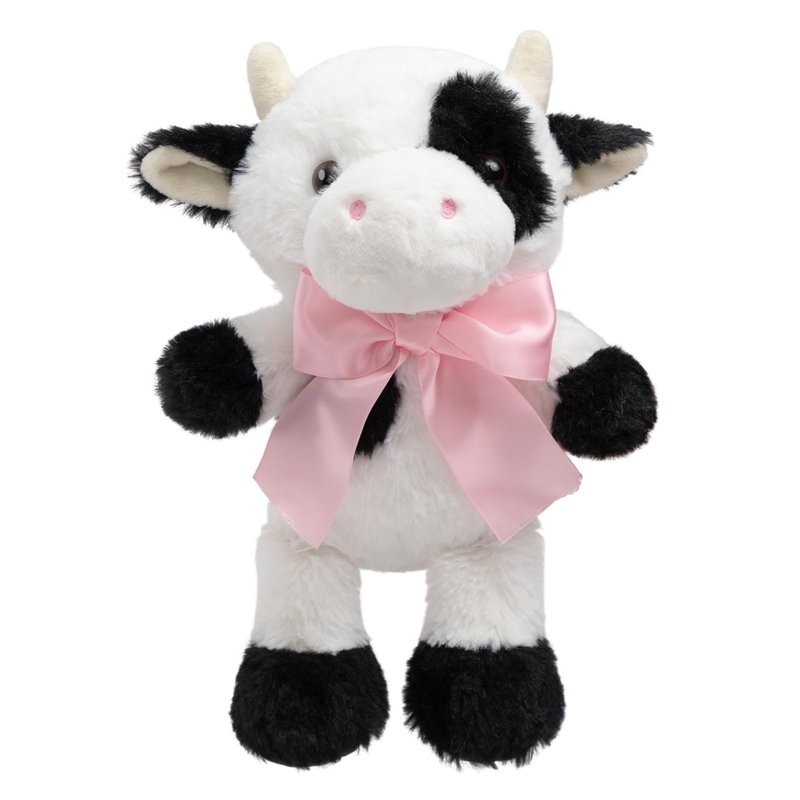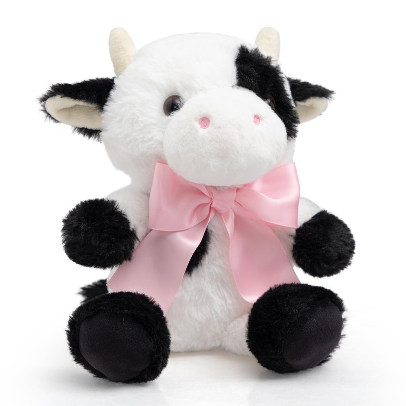- Adorable Design: Cute cow plush features silky black and white fur, a big pink bow tie and an expressive look