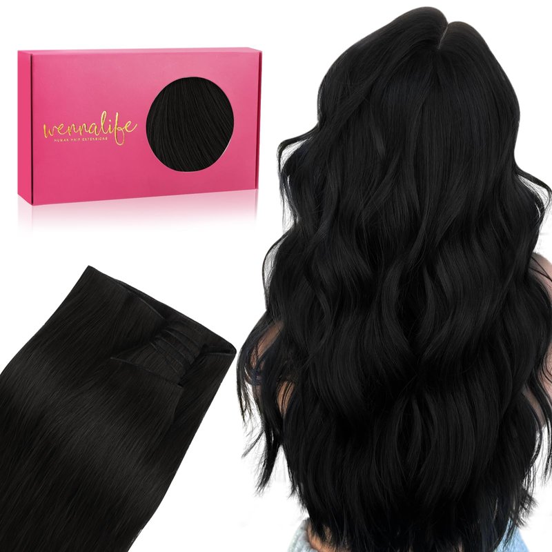 WENNALIFE Genius New Weft Hair Extensions Real Human Hair, 20" 60g Jet Black Sew in Hair Extensions Natural Luxury Remy Human Hair Extensions for Women Straight Invisible Extensiones de Cabello Humano