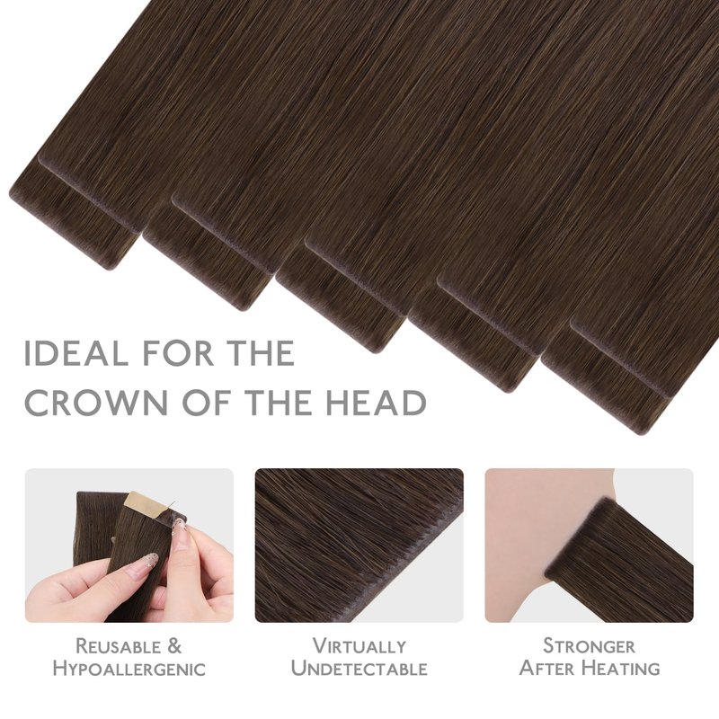 WENNALIFE Invisi Edge Tape in Hair Extensions Human Hair, 16 Inch 50g 20pcs Chocolate Brown Invisible Luxury Remy Hair Extensions Natural Seamless Injected Tape Ins Straight Extensiones De Cabello