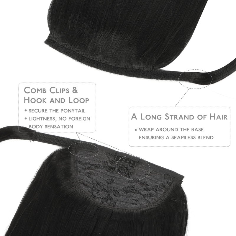 - 【Easy to Wear & Long Lasting Wear】- Wrap around ponytail hairpieces, easy to wear and take off by yourself, no damage to your own hair. With the magic paste design, you don’t need to adjust it frequently. The ponytail extensions can hold into one place, it is convenient and can save you time. It's also very easy to restyle on any occasions and maintain to keep in good condition.