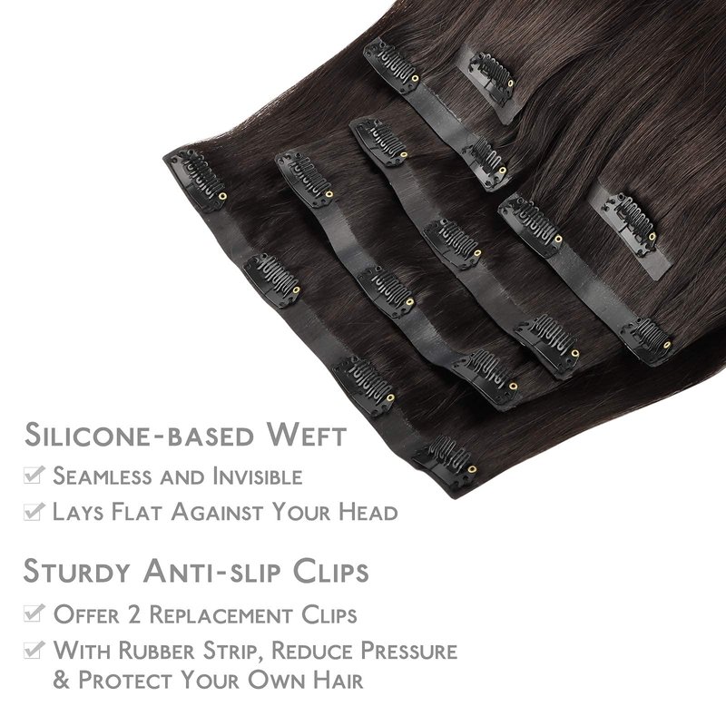 - 【Seamless Clip In Hair Extensions Quality Assurance】- Invisible and comfortable seamless clip in hair extensions are made with high-quality virgin human hair, silky salon professional human hair, soft like your own natural hair, no shedding, no tangling. They are made with a thin silicone-weft base that lays flat against your head and lets you feel more comfortable. A thin silicone-based weft base can create a more natural look.