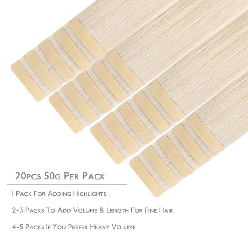 - 【Tape in Hair Extensions Specification】 WENNALIFE tape in hair extensions human hair (rallonge cheveux humain) are 1.5 inches wide with 20 pieces 50g per package, from 14" to 24". For a full head, we recommend using 3-4 packs. Our real human hair extensions can be dyed, strengthened, and curled (under 250F), providing endless styling possibilities. With proper care, our tape in hair extensions can last up to 3-4 months. Try today and transform your look with ease!