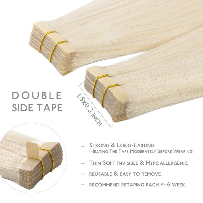 Double-sided high-quality tape, high-strength & invisible, help the extensions blend perfectly with your hair.