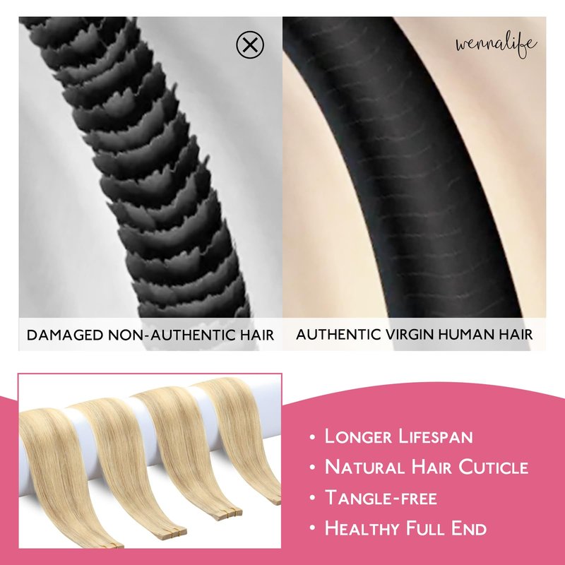 - 【Versatile Tape In Extensions】Explore WENNALIFE 1.5-inch wide, 10-pcs tape ins, sizes from 10" to 26", grams from 20g to 30g. With our human hair tape in extensions, 1 pack is enough for highlights, for full head highlights we recommend 2-3 packs. To add volume to the full head, we recommend ordering our 50g tape ins 2-3 packs. These can also be a refill pack for 50g. Please kindly keep in mind that less washing can help keep the color vibrant.