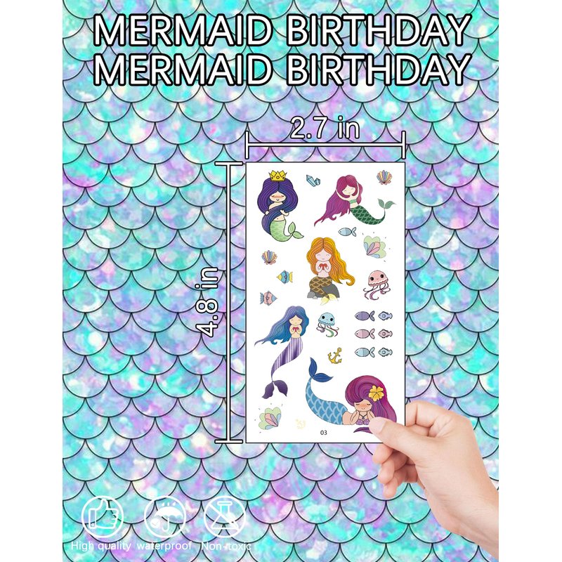 - Applicable Occasions: These mermaid temporary tattoos can be adhered to your hands, face, arms, or legs. Ideal for mermaid-themed parties, family gatherings, and mermaid-themed birthday parties. They'll surely make you the center of attention.