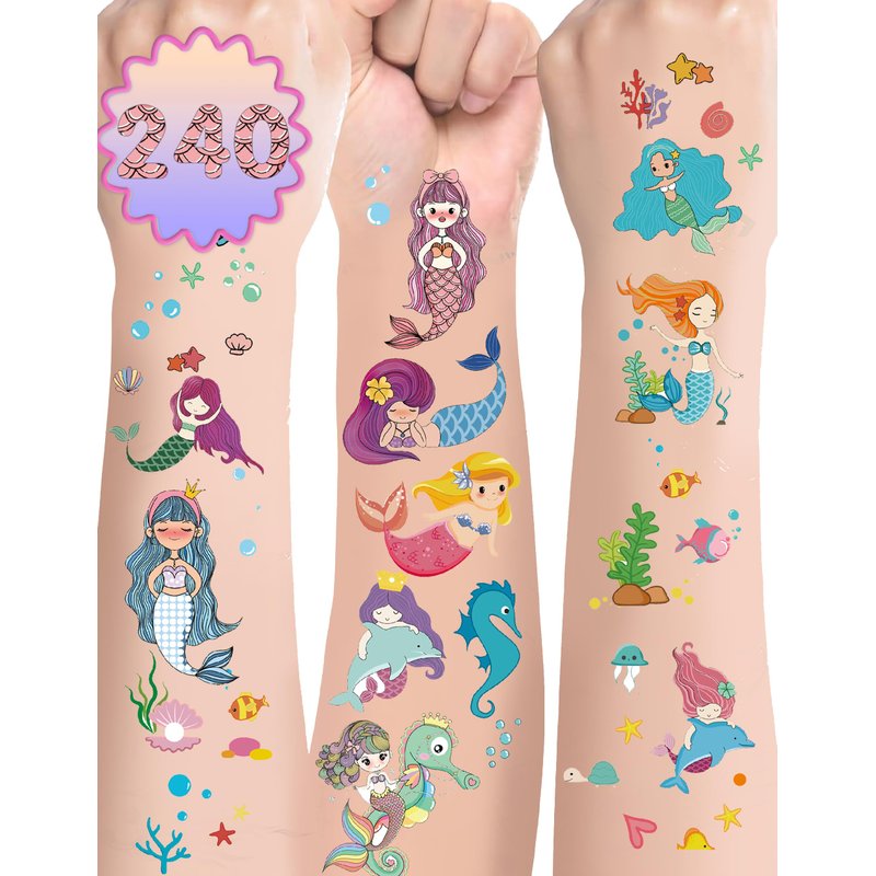 240 Pieces Mermaid Temporary Tattoos Themed Birthday Party Favors Supplies Decorations, Mermaidl Tattoo Stickers Gifts For Game Prizes Reward