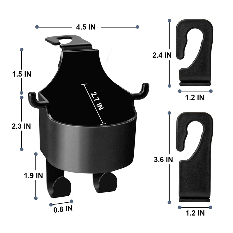 Product Description: Do you want to make your car life easier? 2024 New 3-in-1 hook for purse in car: The new 3-in-1 fashionable and lovely multifunctional headrest hook is a perfect choice for you to organize items in car. car bag holder combines a hook with a water cup holder and a cell phone holder, Convenient for cups and cell phone videos and hanging items, and the perfect integration with the car interior! car purse hanger is well designed to hold different types of items, helps to keep your car clean and organized, blends perfectly with your car's interior and is undoubtedly your best choice! Features: 1:Layered Storage: The new multifunctional purse holder hook is a car seat hook and cell phone holder, more convenient to place the water cup, and the perfect integration with the car interior! 2:Equipped with Both Short and Long Hooks: car purse hanger hook have short hooks for thinner car seats and long hooks for rear seats, suitable for most cars. 3:Clip Design: The purse holder hook is easy to hang items and easy to install, and its universal design allows for easy installation. 4:Thickened Double Hooks Design: Thickened car seat headrest hooks are made of high-quality materials with stronger load-bearing capacity. 5:Multi-functional Car Seat Hanger: It can be used as bag hooks for car to hold water cups, car storage hooks to hang items, and can also hold your cell phone as a cell phone holder! 6:Strong Weight-Bearing capacity: The new purse car holder are very strong, can hang a heavy wallet, and will not leave marks on the leather seats! Specification: Product Name: purse hook car、car hanger、seat hooks、car hook for purse、car umbrella holder、bag hanger for car、handbag holder for your car、car purse hooks、car seat headrest hook、car purse hook headrest、bag holder car hook、car seat hooks for bags、seat hooks for vehicle、purse hanger car、purse holder car、hanger for car、bag hook for car、car coat hanger、hooks for car seat headrest、hooks for car、umbrella holder for car、car handbag holder、car seat holder、head rest hooks car、car hooks for bags、car seat hooks for purses and bags、car coat hanger、car storage accessories; Colour: Black Material: ABS Size: 8.5*7.1*14.4cm Function: The car bag hook can be used as a cup holder, hook, cell phone hanger, cup holder, hook, cell phone holder and so on; Applicable: all models Package include: 2pcs *Multifunctional car headrest hooks for purses and bags Purse hooks for car headrest are cute and stylish and can hold different types of items, will keep your car organized, a little car headrest hooks will make your traveling life easier.