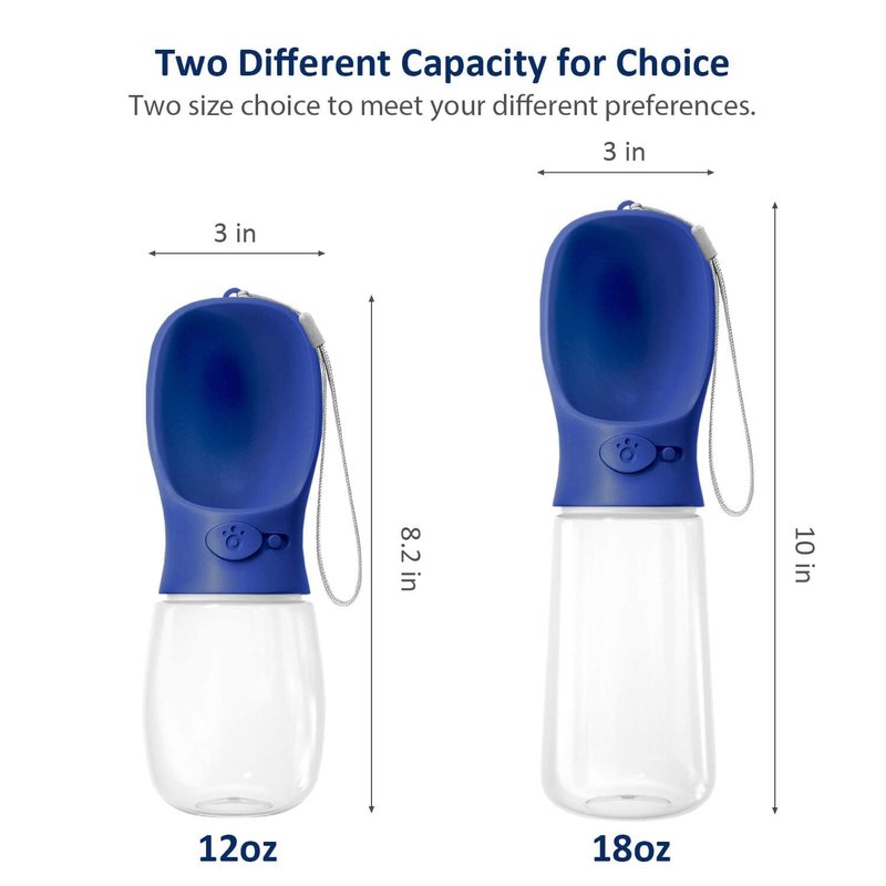 This water bottle is truly a godsend! Made of high quality material, lead-free, BPA-free, safe and durable, easy dismantling and cleaning. Enjoy the safe and funny outdoor act with your pet, I would recommend you purchase the larger bottle