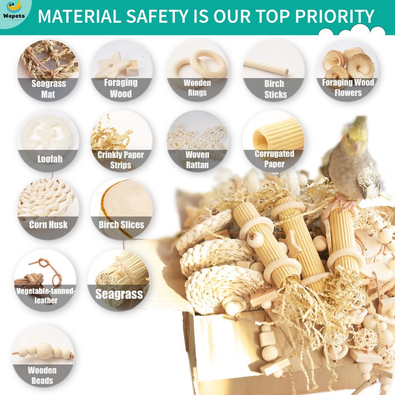 - TRUST IN WEPETS: Wepets is a high-quality and trusted brand in the pet toy industry. Our foraging parrot toy is made from all-natural materials, making it a great choice for those looking for a natural, foraging, non-toxic, safe or durable parrot toy.