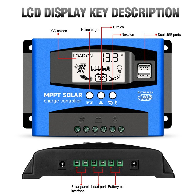 - MULTIPLE INTELLIGENT PROTECTION: Built-in overcurrent protection, short circuit protection, reverse connection protection, open circuit protection, all automatic recovery, no damage to the controller, a reliable protector for your devices. To protect the lifespan of your battery, once the voltage of the battery drops below 8V, the solar controller will turn off automatically.