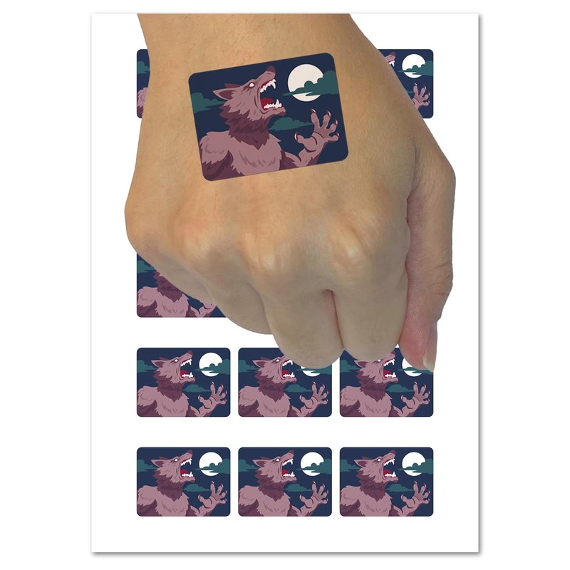 Werewolf Monster Howling at Moon Halloween Temporary Tattoo Water Resistant Fake Body Art Set Collection - 54 1" Tattoos (1 Sheet)