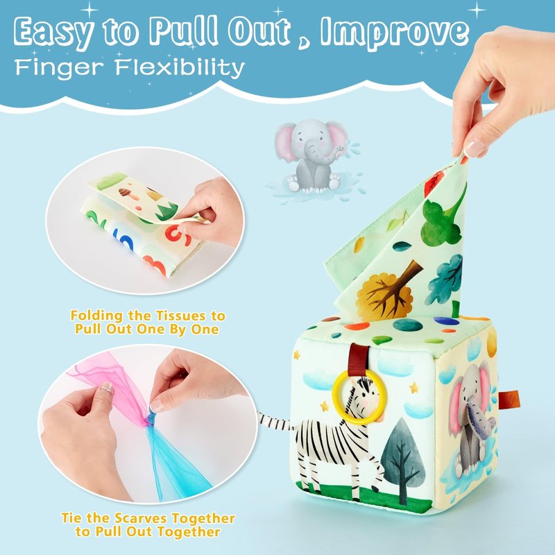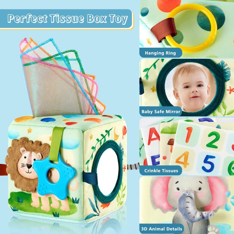 - Ideal Gift for Baby Boy and Girl: Our tissue box is an ideal newborn gift for 0 - 12 month infants, perfect gift for birthdays and Christmas. Babies can have endless fun in baby sensory toys with families, helping to create memories of fun times between child and parent.