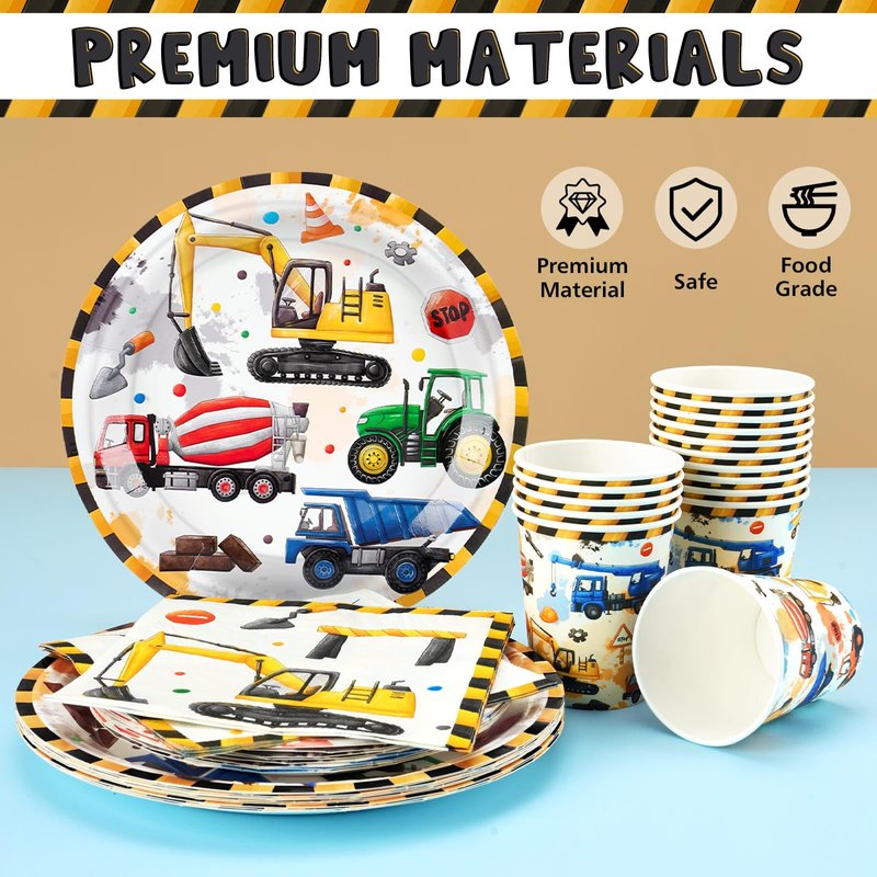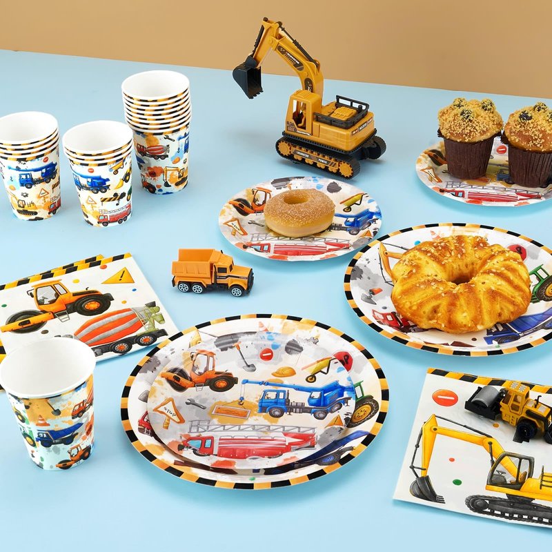 - EASY TO DECORATE - This construction party set includes all the essential accessories you need. Simply set them out on the table, fill the cups and plates with drinks and food, and await the arrival of kids and guests. Easy to prepare, perfect for a construction-themed party.