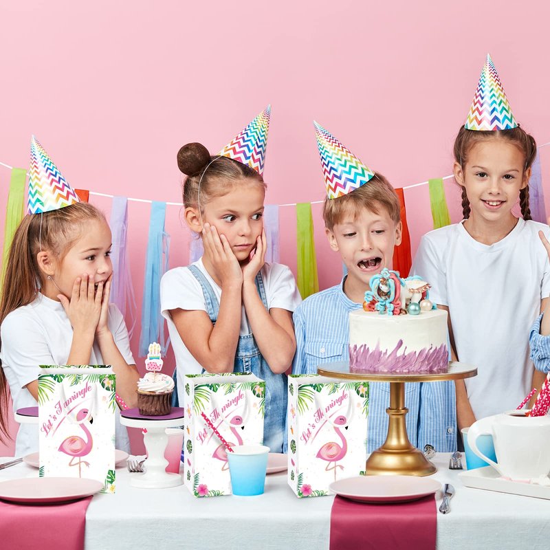 - 【EXQUISITE PARTY】 - Wow, Congratulations for having an exquisite party. You would get Flamingo Portable Paper Gift Bags for the Party. Carrying this bag with little gift, we believe these kids will have good time and get their little wish achieved!