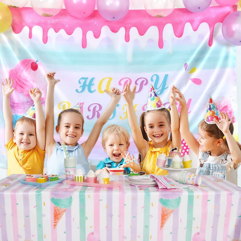 - 【Versatile Use】 -- 54" x 108" Size perfectly match your party demand and suitable for most tables. Not only suitable for birthday, wedding and ice cream themed party, but also for outdoor use such as picnic and hiking.