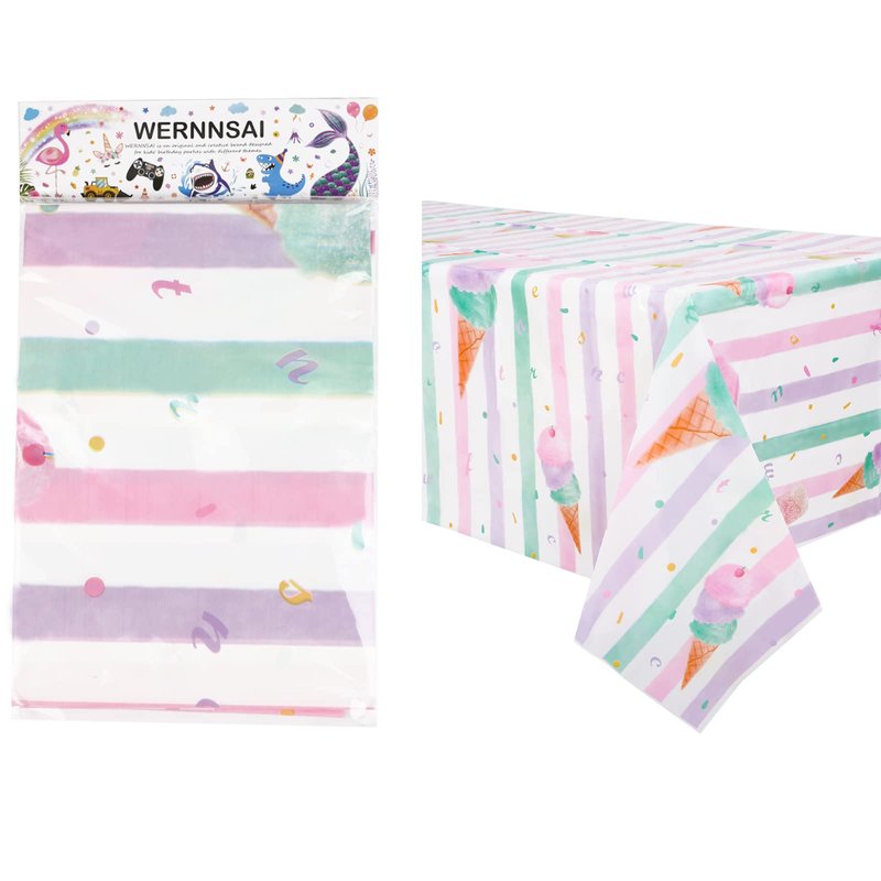 WERNNSAI Ice Cream Party Table Cover - 54” X 108” Disposable Rectangular Plastic Tablecloth Ice Cream and Popsicle Themed Party Supplies for Kids Girls Birthday Baby Shower Wedding Party Decorations
