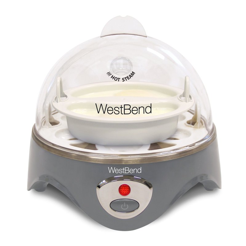 West Bend 87628 Automatic Electric Egg Cooker Hard-or Soft-Cook 7 or 2 Poached or Scrambled, 360 Watts, Gray