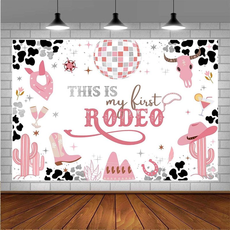 West Cowgirl Theme Birthday Party Background Wild West Party Supplies This is My First Rodeo Banner Girl Birthday Party Cow Print Pink Cactus Western Girls Party Decoration Supplies (6X4FT)