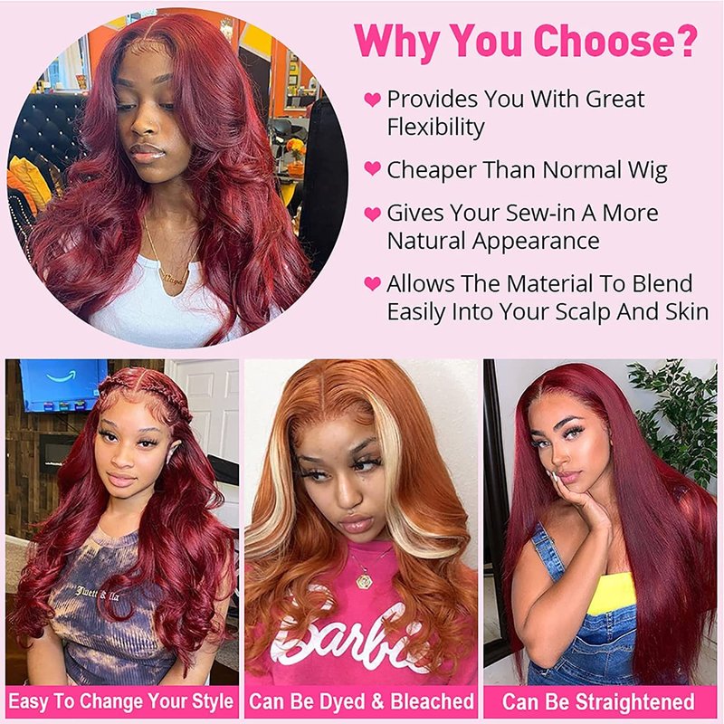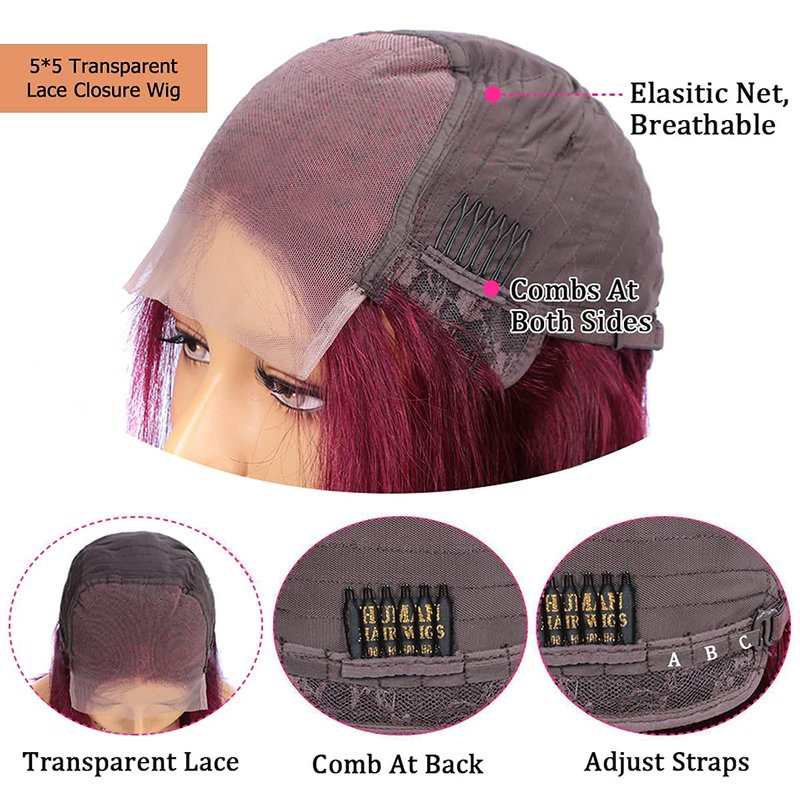 - Color: Burgundy Body Wave 5*5 Closure Wigs