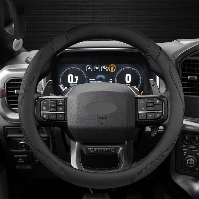 - 【HIGH QUALITY MATERIAL】This Ford steering wheel cover is made of high quality microfiber leather, which is soft texture, comfortable, eco-friendly, wear-resistant and durable.