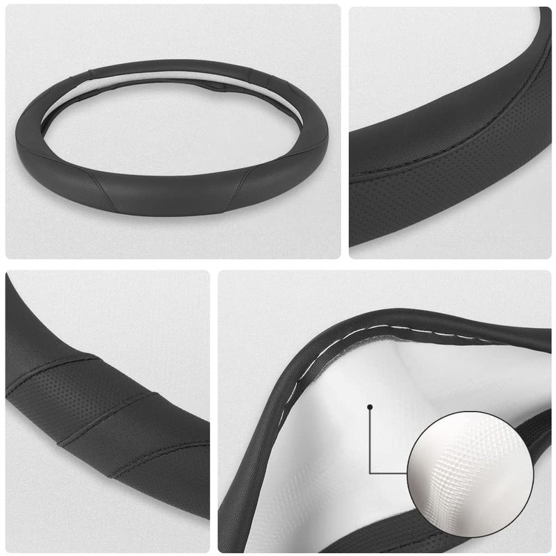 - 【SAFE ANTI-SKID DESIGN】- The inner ring of these steering wheel covers is made of natural rubber and with non-slip veins design, which greatly improves the grip and improves the control of the steering wheel for a safer driving.