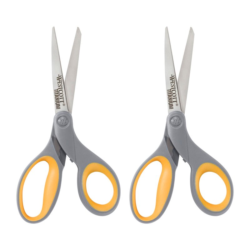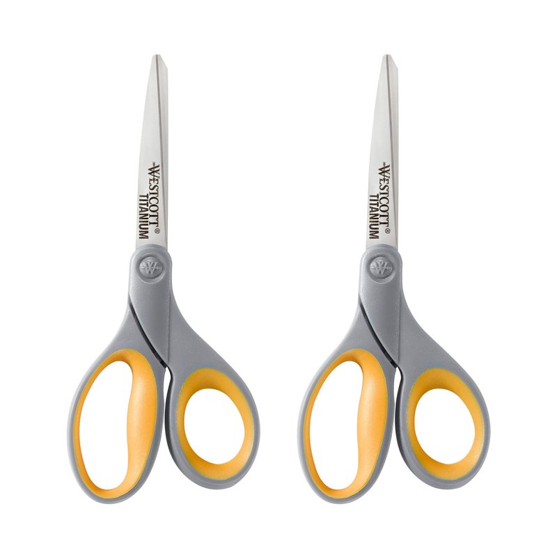 Westcott 13901 8-Inch Titanium Scissors For Office and Home, Yellow/Gray, 2 Pack