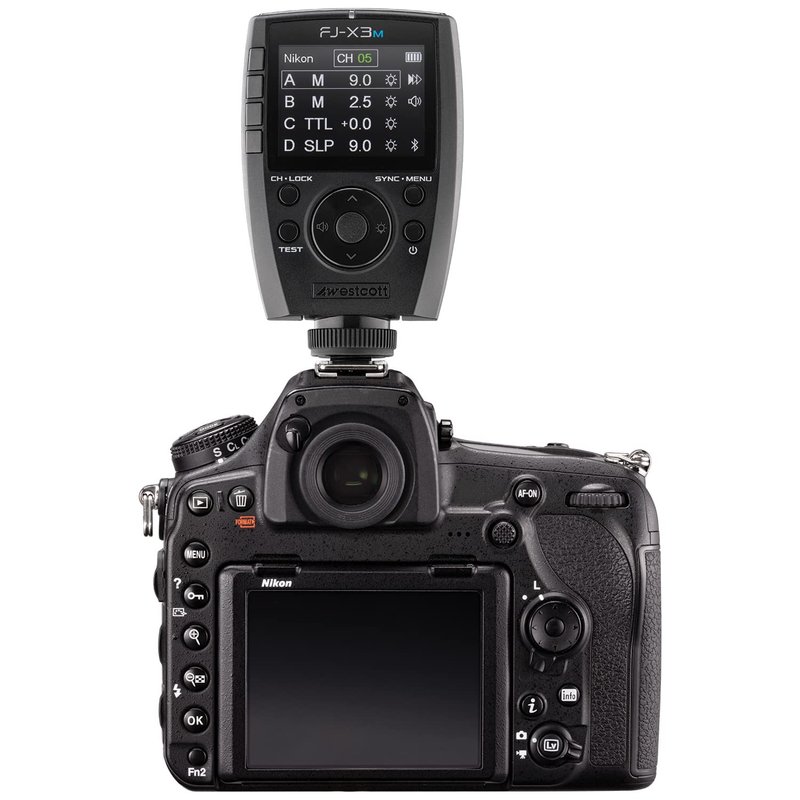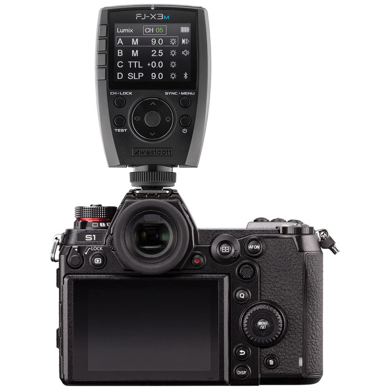 The powerful Westcott FJ-X3 M Universal Wireless Trigger is equipped with multi-brand technology that pairs with most camera brands to trigger the FJ Wireless ecosystem of flashes and strobes. This 2.4 GHz remote is compatible with many Canon, Nikon, Sony (with adapter), Fuji, Panasonic Lumix, and Olympus cameras. See the compatibility chart for more details. The FJ-X3 M mounts to a camera's hot shoe to wirelessly control multiple FJ400s, FJ200s, FJ80s, FJ-XR receivers, or compatible Canon RT devices. Get reliable wireless connectivity up to 985’ (300m) with enhanced performance in high-interference locations like weddings and events. It runs on a long-lasting removable lithium-ion battery. The FJ-X3 M is designed with a large display, user-friendly menu, and multi-select control pad for making quick adjustments. Functions include TTL, High-Speed Sync, Front and Rear Curtain Sync, Compatible with Canon RT flash, group and channel assignment, Group Exposure Compensation, TTL to Equivalent Manual, modeling lamp settings, and much more. Westcott’s mobile app allows you to remotely adjust FJ Wireless flash settings via built-in Bluetooth. Using the app increases the number of groups with color-coding options for quick recognition. It also allows you to save lighting scenario settings and includes other time-saving features.
