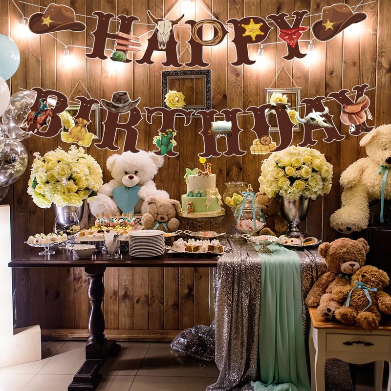 - Western Cowboy Theme Happy Birthday Banner can be pair with balloons, garland, colored ribbon, flower, luminous decoration, which can add much festive and fun to your western cowboy theme party.