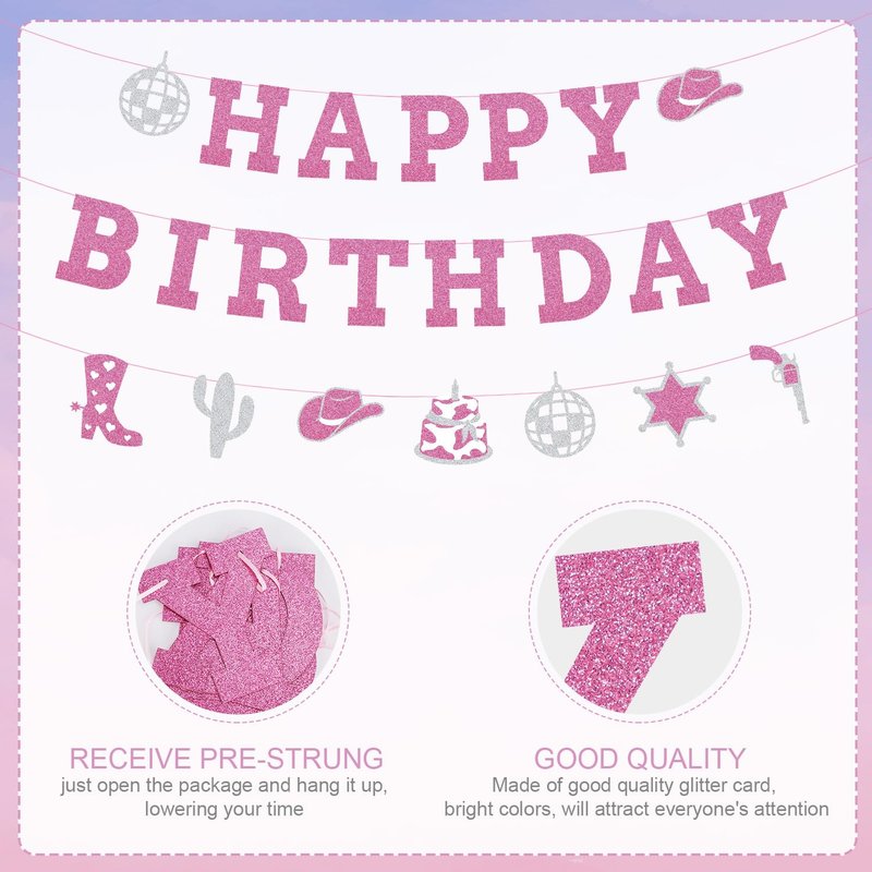 Western Cowgirl Happy Birthday Banner, Glitter Cowgirl Birthday Banner Disco Cowgirl Happy Birthday Banner Easy To Use Perfect Birthday Celebration Decorations