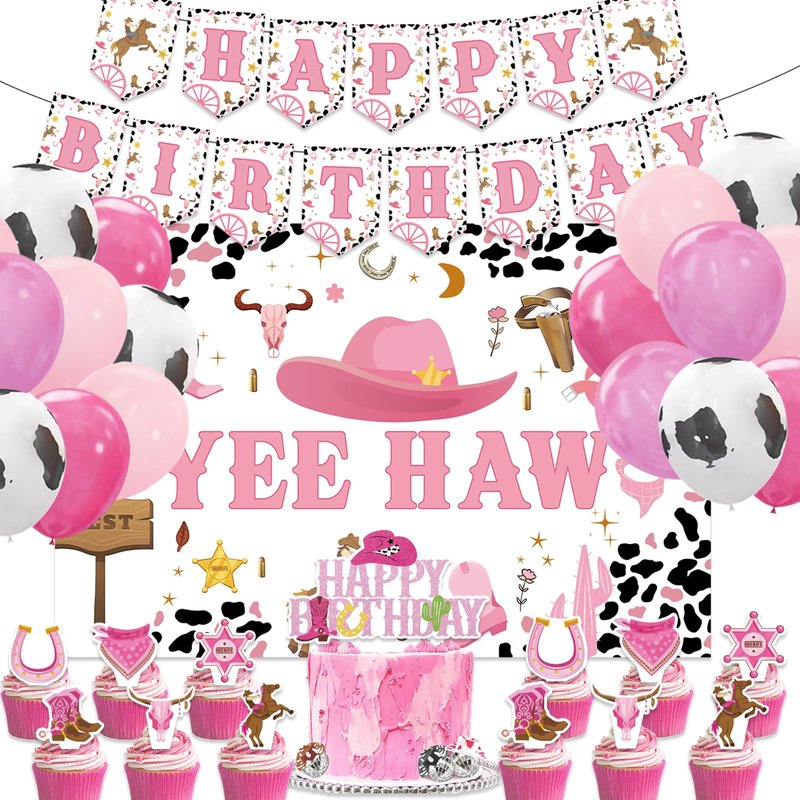 - 【Package Includes】Our Western Cowgirl Birthday Party Decorations set comes with everything you need to create a fun and memorable party atmosphere! The set includes: 1 Birthday Banner, 1 Cake Topper, 24 Cupcake Toppers, 24 Balloons, and 1 large party backdrop. It's the perfect set to transform your party space into a western wonderland!