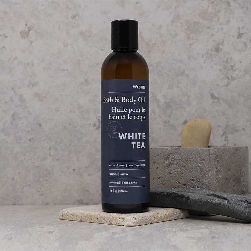- INCLUDES - 8 oz. bottle of Westin White Tea Bath & Body Oil | Free of PABA, Parabens, and Dyes | NOT Tested on Animals