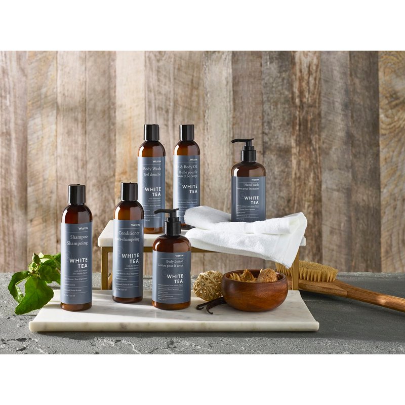 - WESTIN HOTELS EXCLUSIVE - Bring the Westin Hotels bath & body experience home with our full line of signature White Tea Aloe products. With our complete set, you can enjoy the same hair and skin care products found in Westin Hotels & Resorts worldwide.
