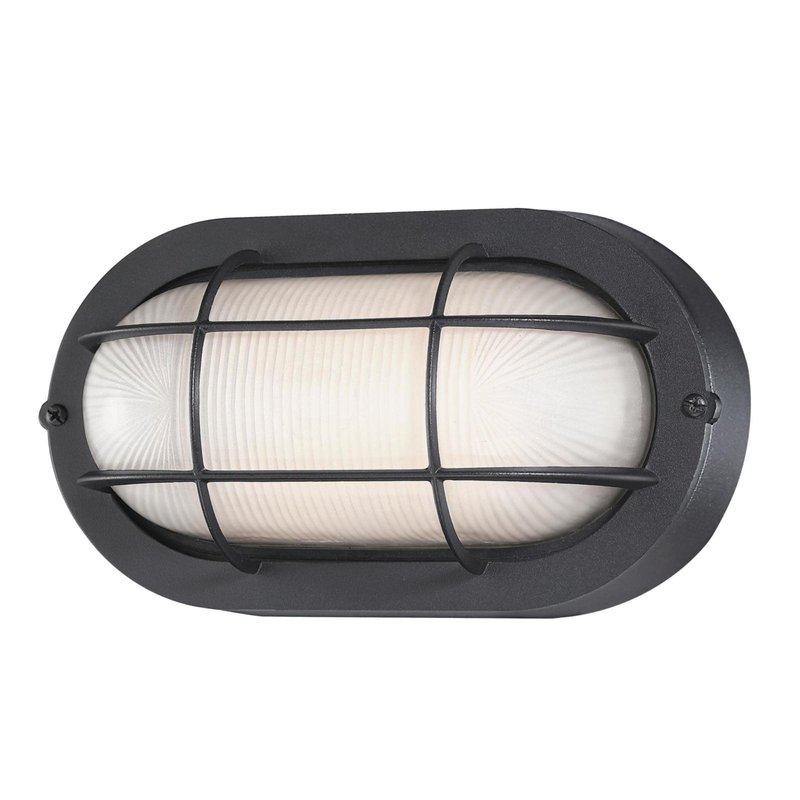 - Outdoor rated wall sconce, textured black finish and white glass cage shade